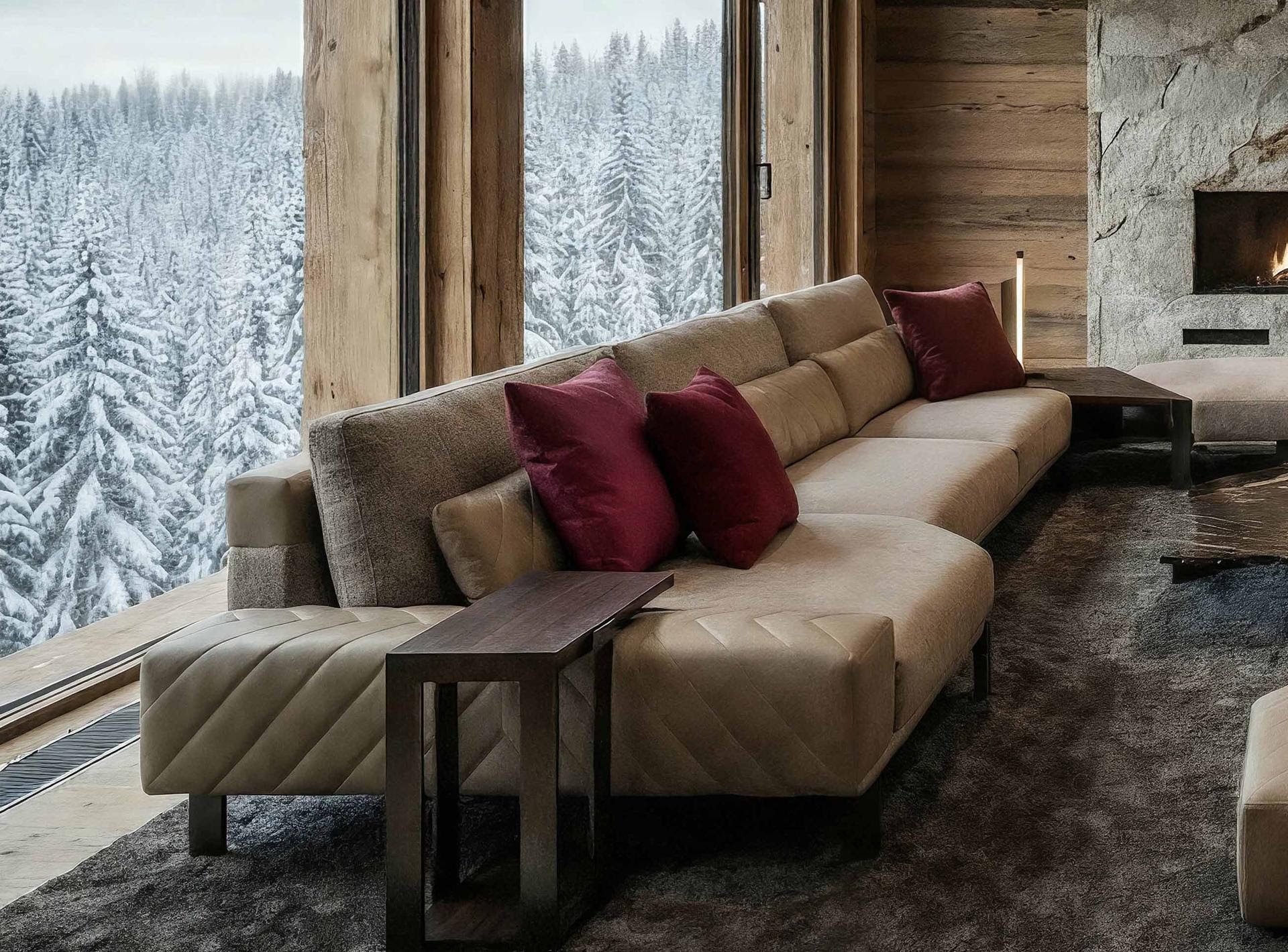 Jeder Bereich des Chalets trägt die unverkennbare Handschrift von ZANABONI: maßgeschneiderte Möbel, edle Materialien und zeitlose italienische Handwerkskunst. Skulpturale Polstermöbel und individuell gefertigte Accessoires schaffen eine Atmosphäre, in der Design nicht dominiert, sondern sich organisch in die alpine Umgebung einfügt.